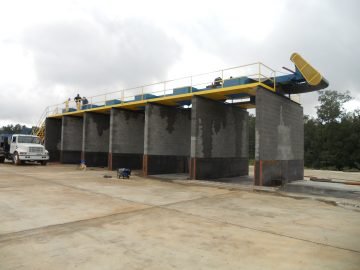 Concrete piles up fast; telescoping Radial-Stackers let a single operator build 20,000-ton stockpiles without relocating.