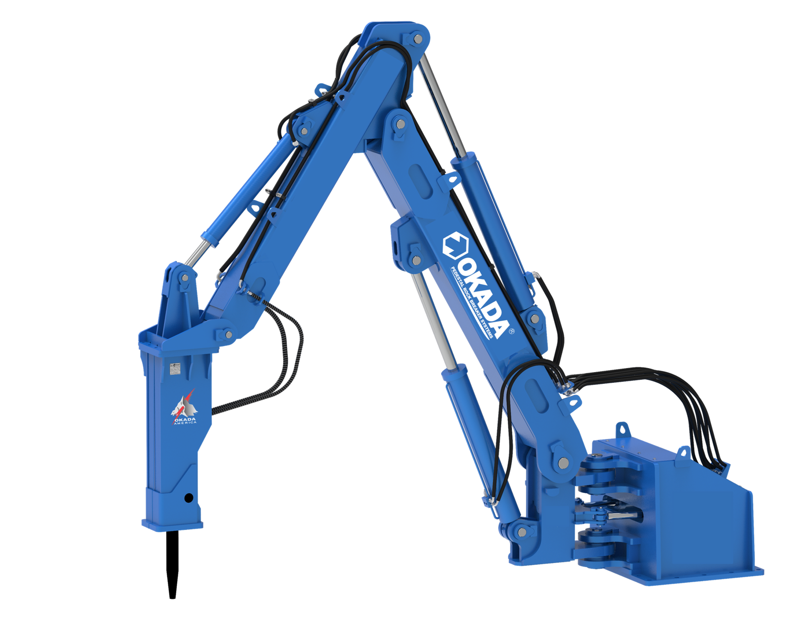 Okada Pedestal Boom System Breakers for stationary primary crushing plants, mobile and portlable plants!